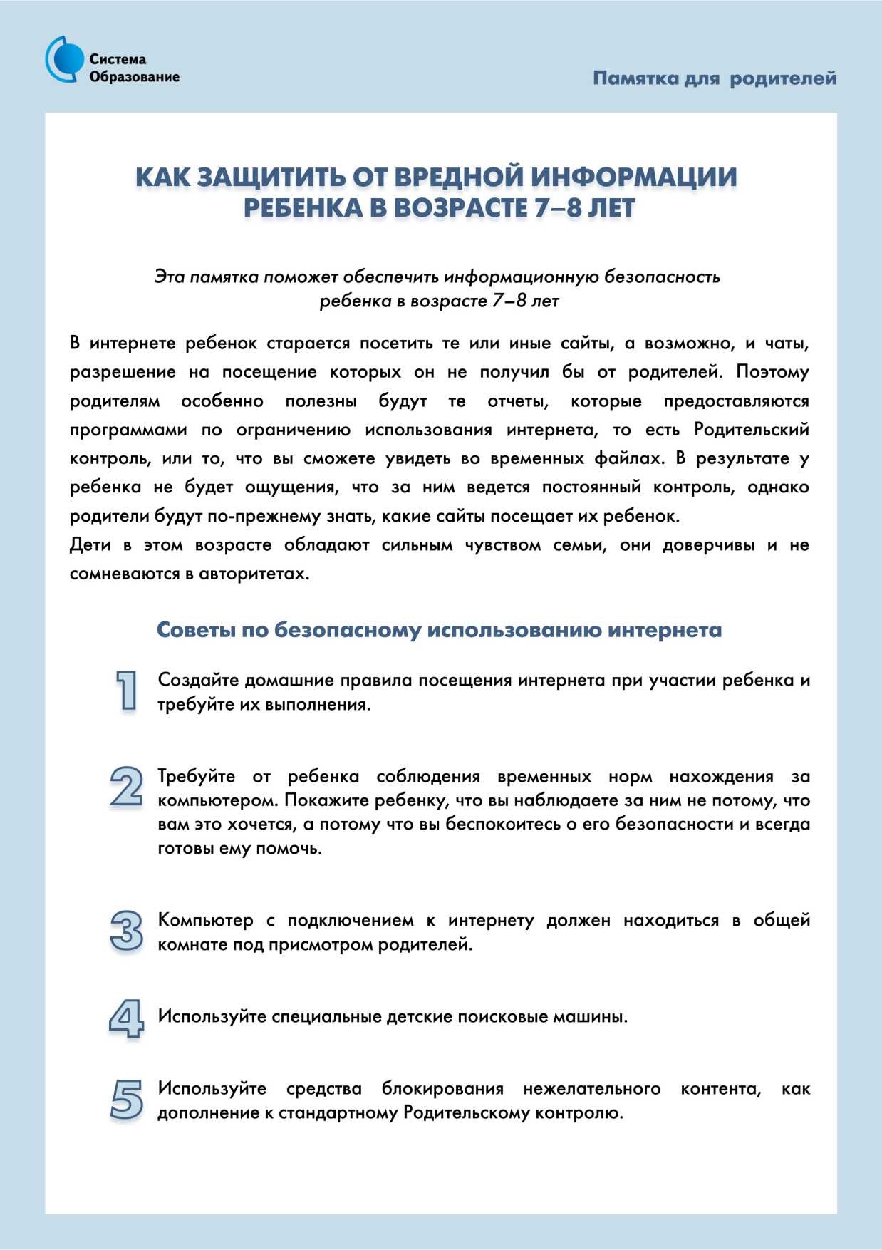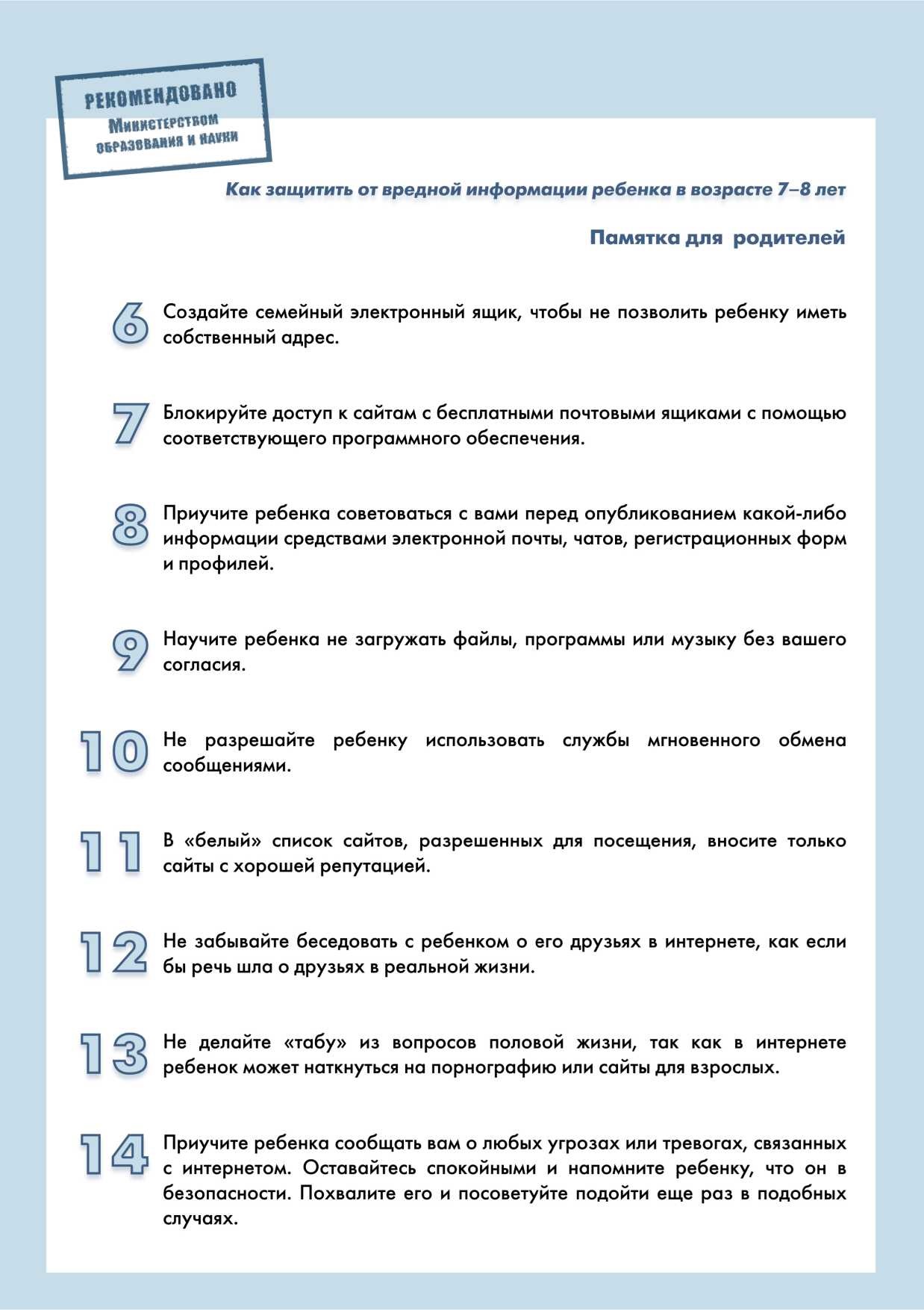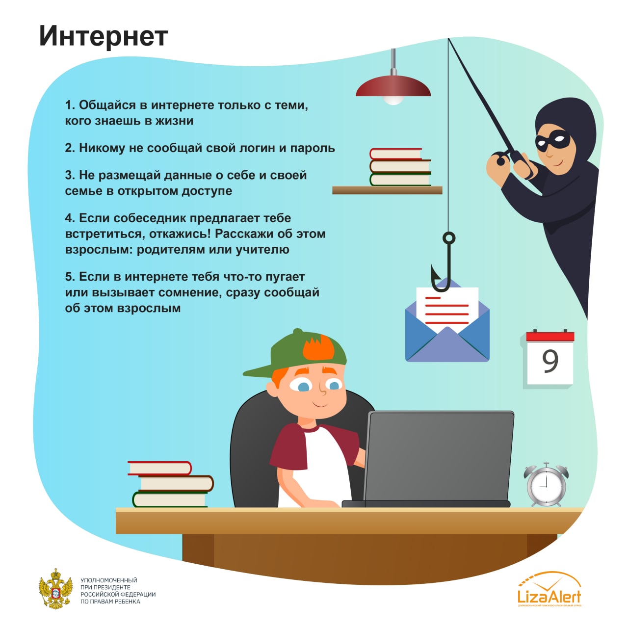 Интернет и дети 1.Объясните детям, что общаться и вести себя в социальной сети необходимо так же осторожно, как и в реальной жизни. 2.Запретите детям оставлять в публичном доступе или отправлять незнакомцам по почте контактную информацию (телефон, адрес). 3.Объясните детям, что нельзя соглашаться на уговоры незнакомых людей о личной встрече. Подобные предложения лучше игнорировать, общение со слишком настойчивым человеком прекратить. 4.Просматривайте сайты, которыми часто пользуется ваш ребёнок, с целью недопущения вовлечения ребёнка в неформальные организации.