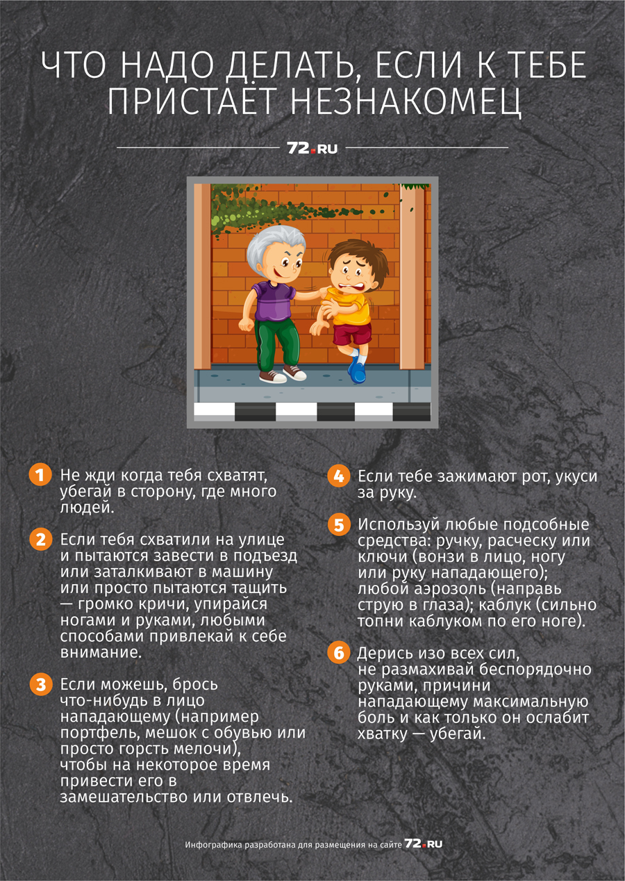 Чтобы уберечь своего ребенка от беды, следует, прежде всего, научить его распознавать опасность. Чтобы завоевать детское внимание, преступники представляются людьми творческих, увлекательных профессий: режиссер, фокусник, спортсмен. Набор предлогов для обращения довольно стандартен. Их цель — заинтриговать ребенка. Мальчику расскажут, что неподалеку лежит ничей самокат или робот. Девочке предложат посмотреть какое-нибудь животное, постараются надавить на жалость, сказав, что за углом лежит щенок с перебитой лапкой.