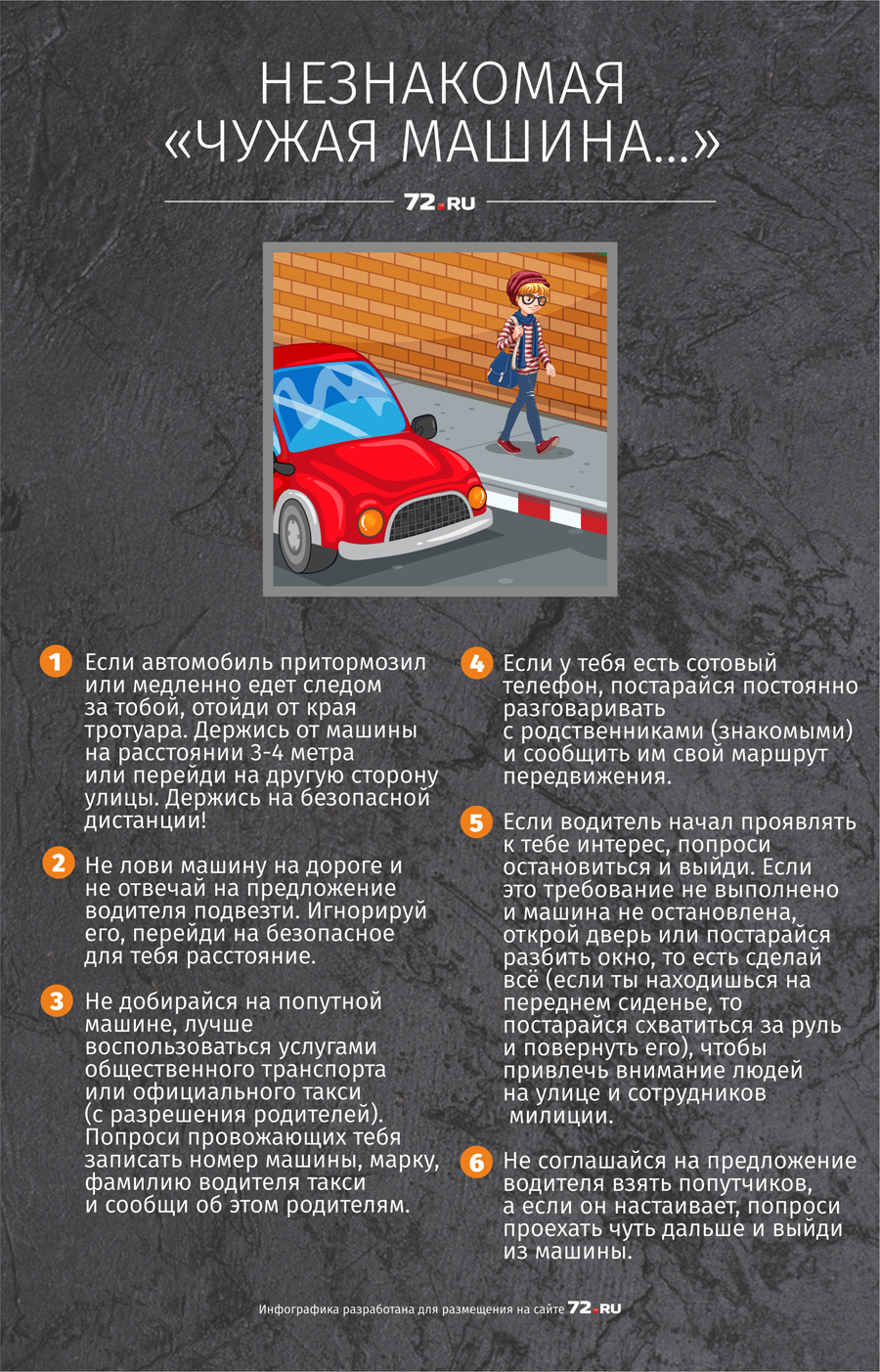 3.Если люди в автомобиле спрашивают тебя, как куда-нибудь доехать, не подходи близко и не соглашайся сопровождать их.
