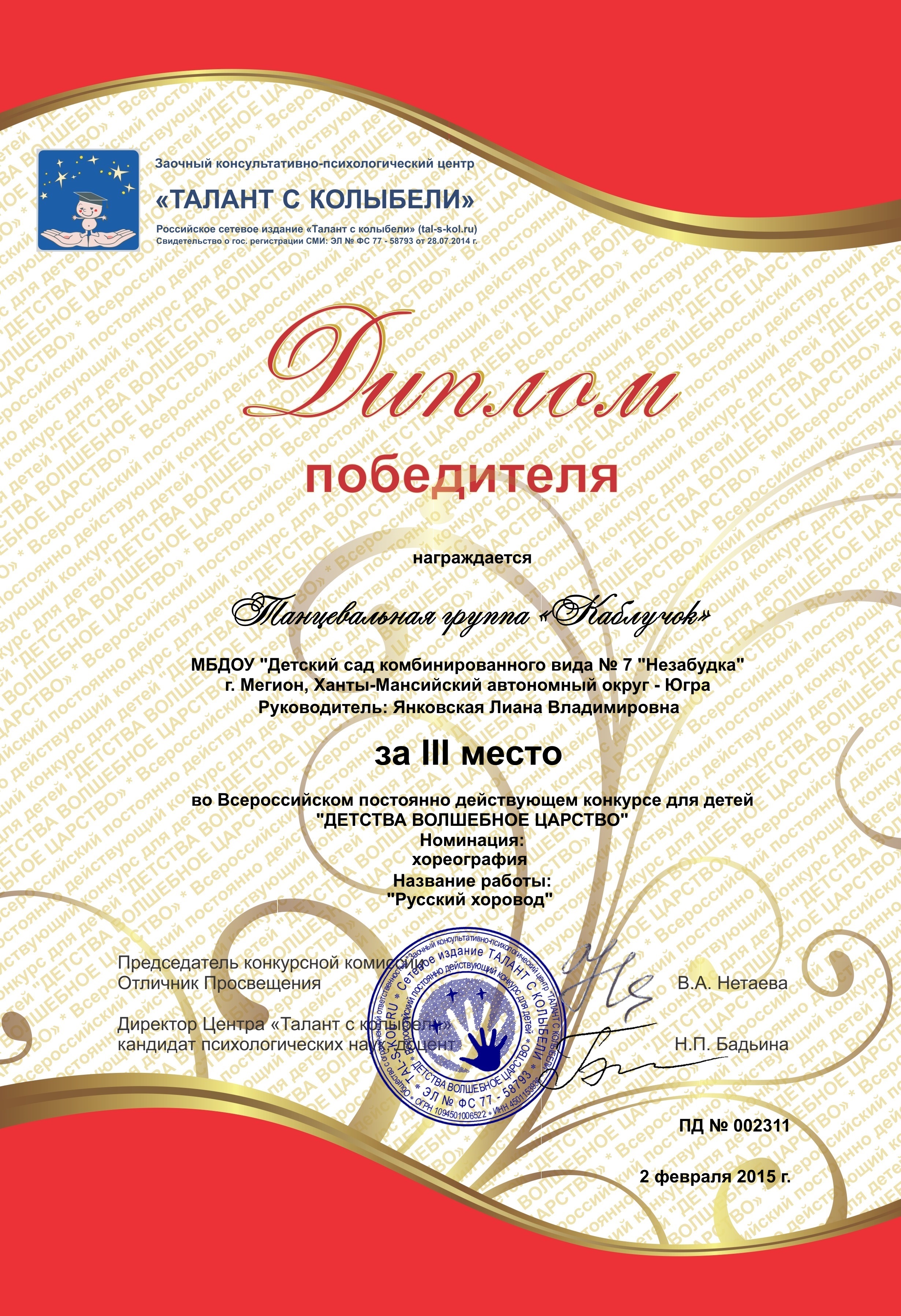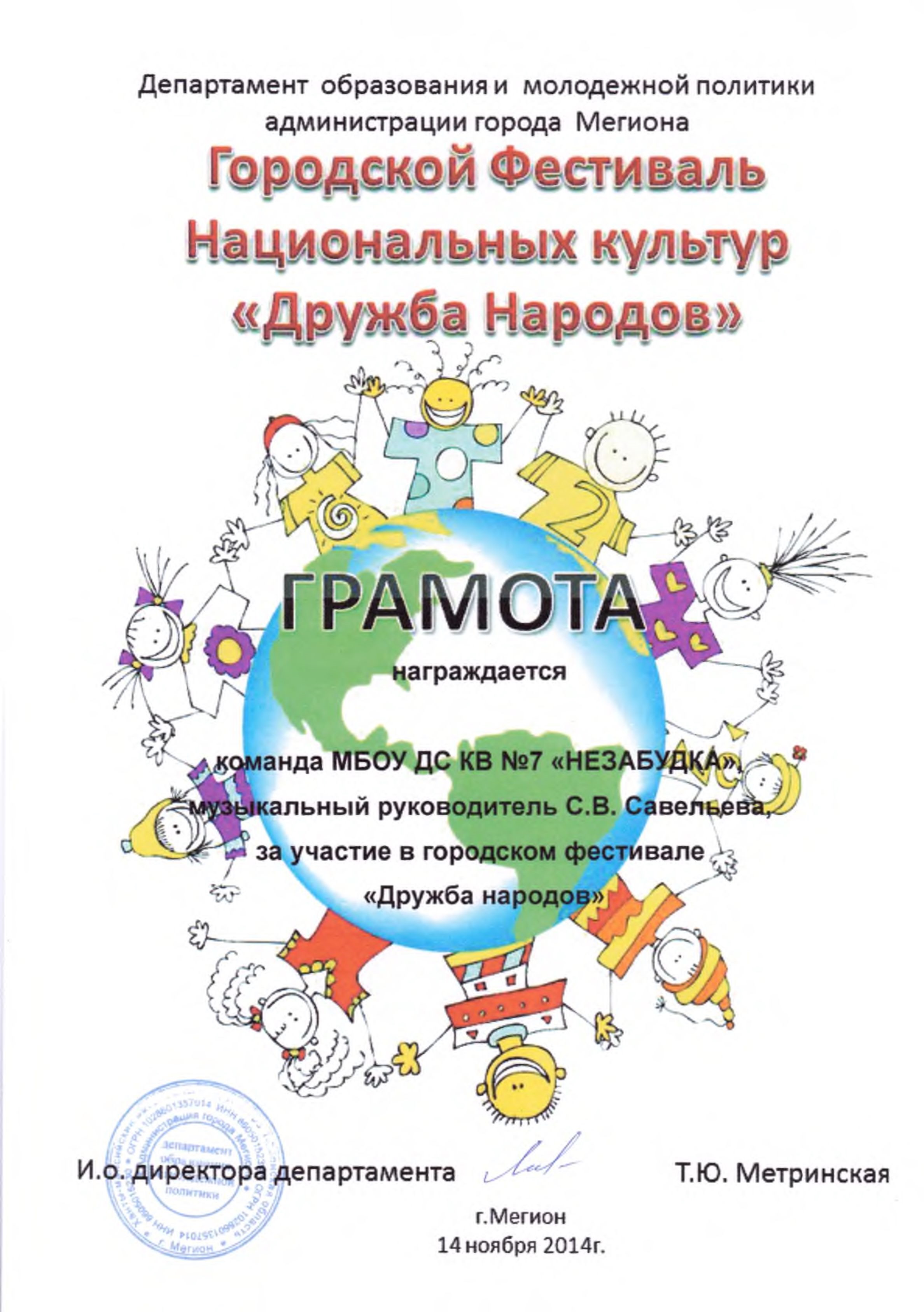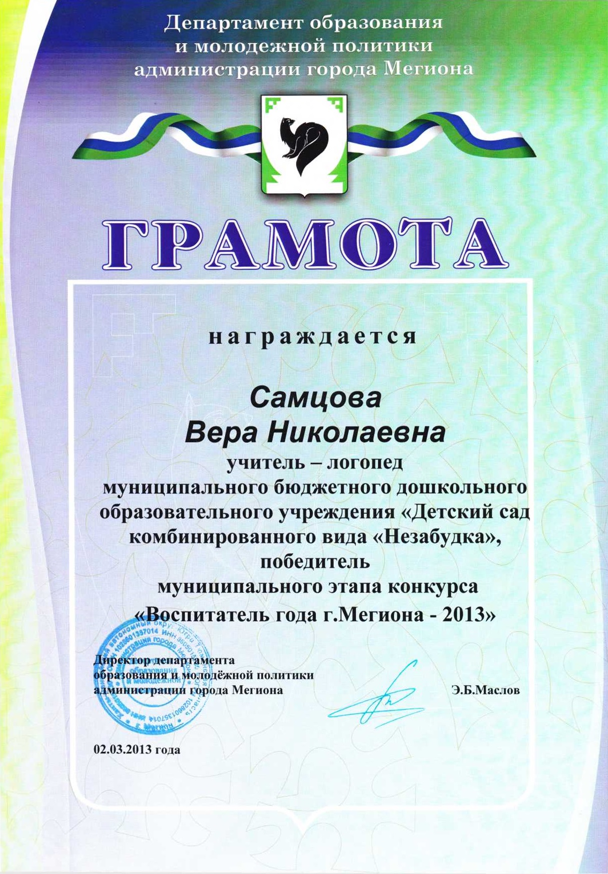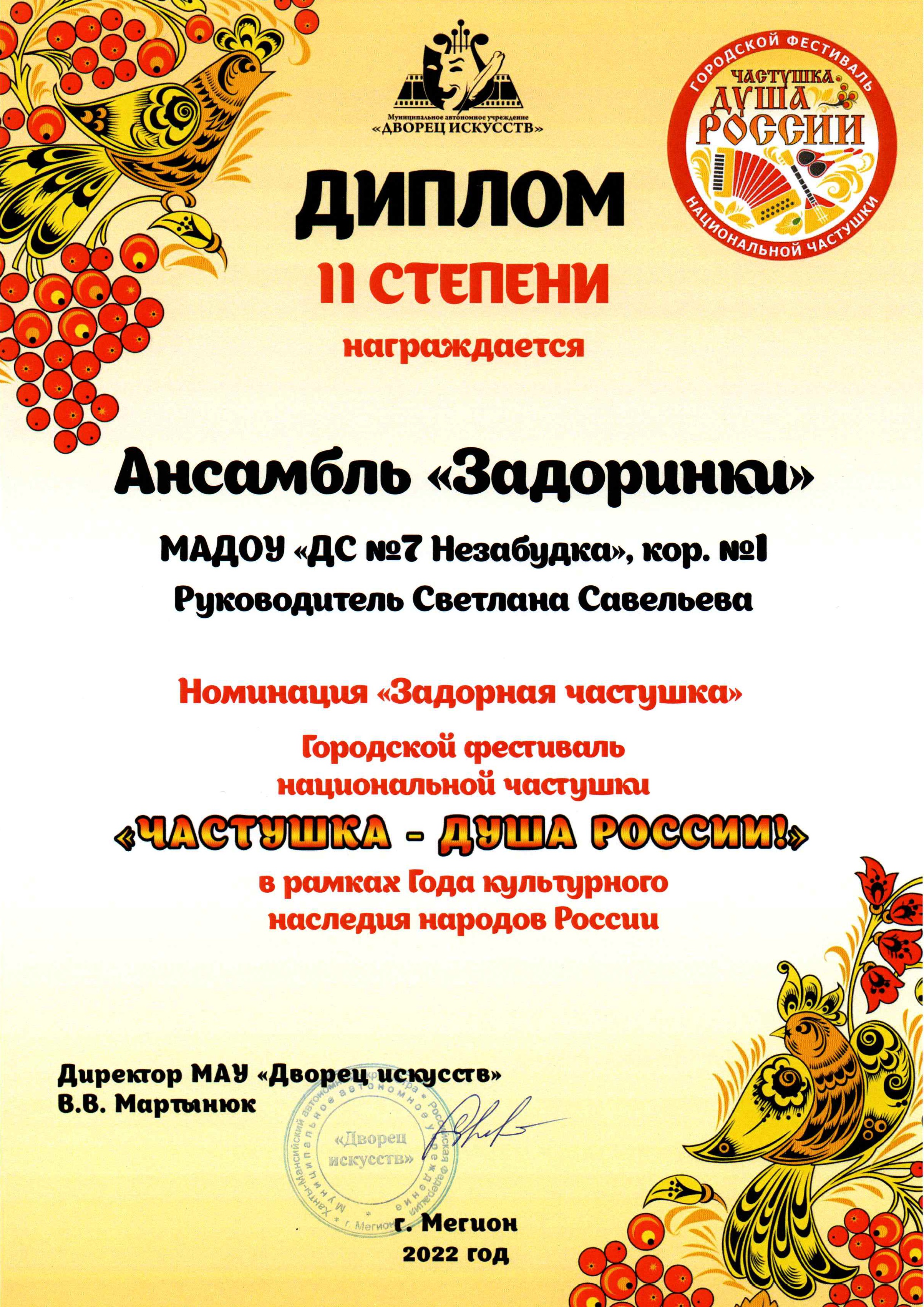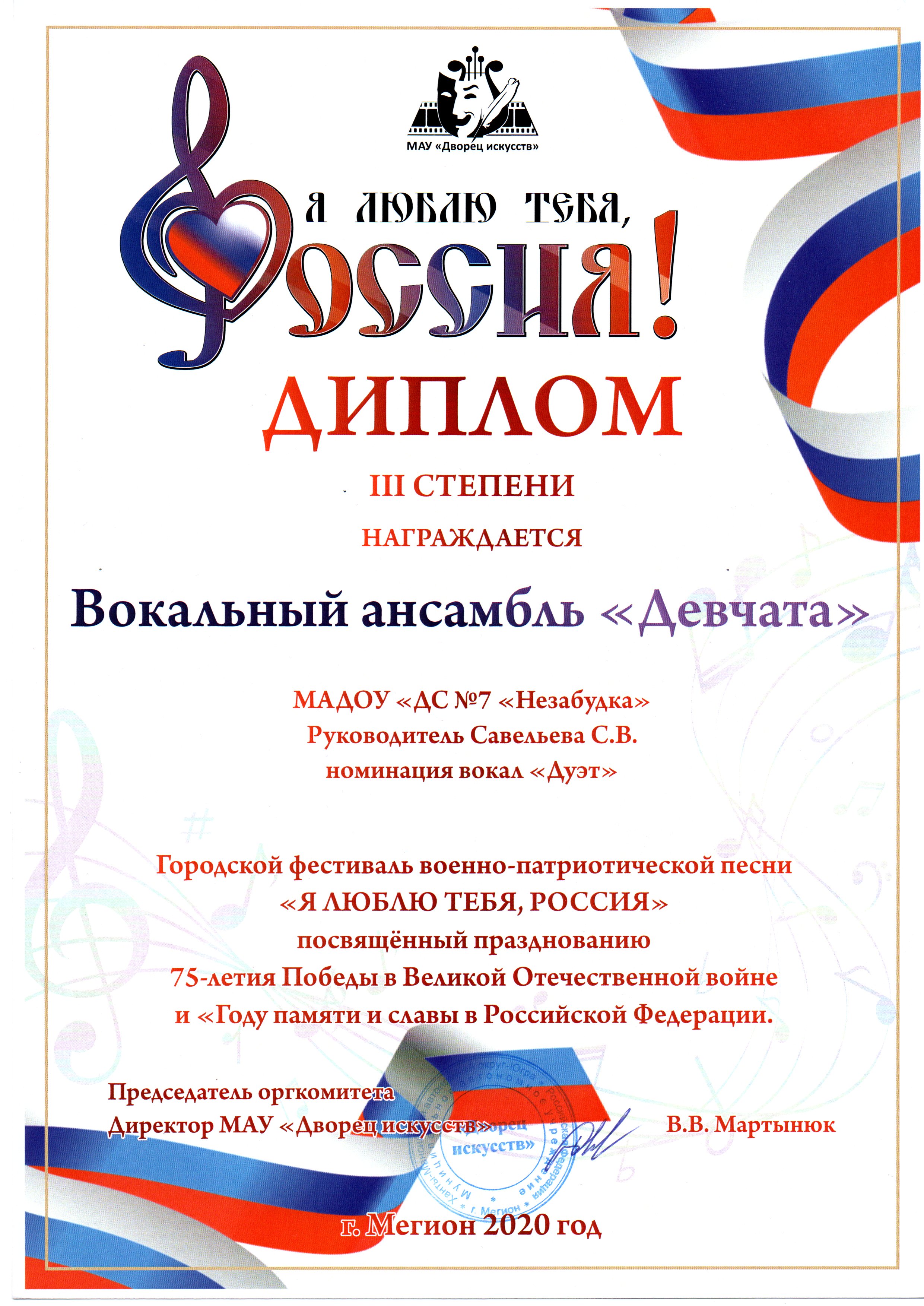 Диплом победителя городского конкурса на новогоднее оформление территорий "Мой зимний дворик" "Мегион ПРО чудеса" |